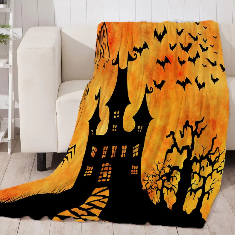 Comprar Manta Thicking para cama Super suave calavera murciélago Halloween manta arte Toalla de playa tiro viaje máquina lavable Online Baratos