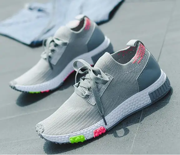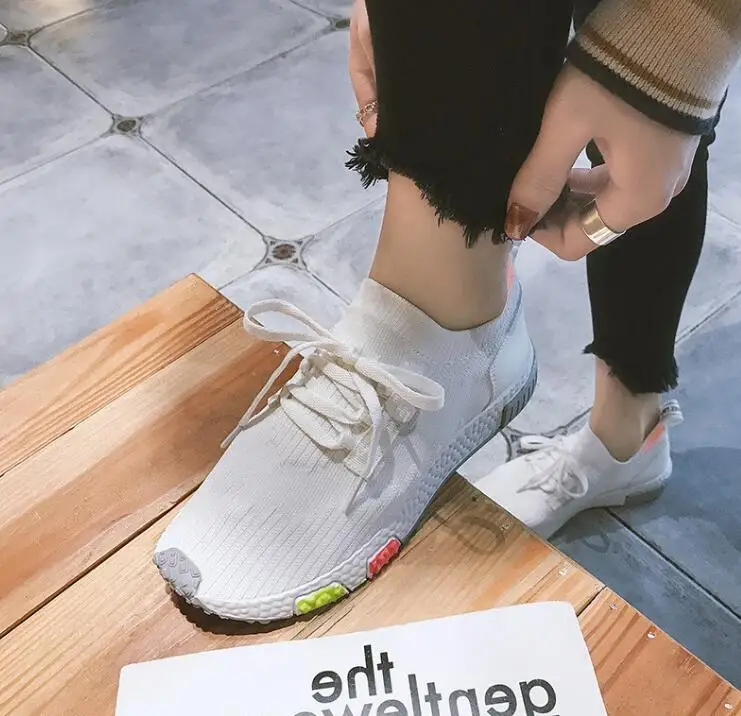 Comprar 2018 nueva llegada del verano tejido de punto mujeres zapatillas mujer diseñador zapatos ocasionales respirables Tenis Feminino blanco Online Baratos.