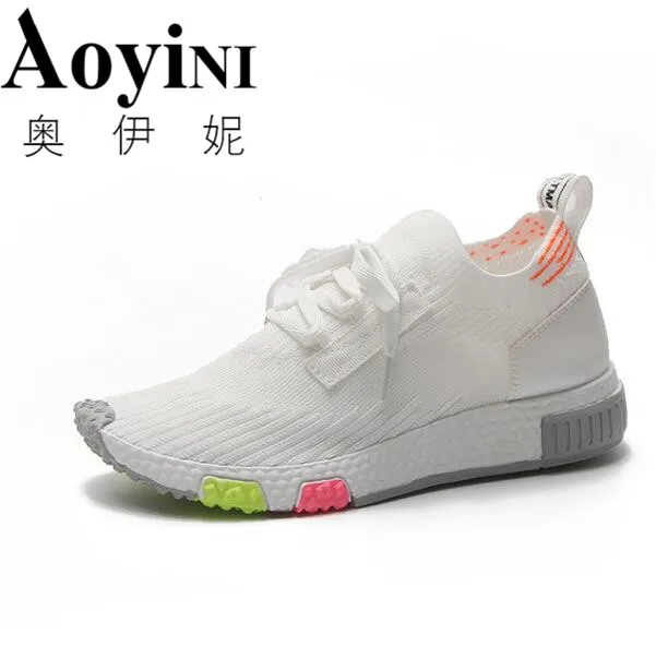 Comprar 2018 nueva llegada del verano tejido de punto mujeres zapatillas mujer diseñador zapatos ocasionales respirables Tenis Feminino blanco Online Baratos