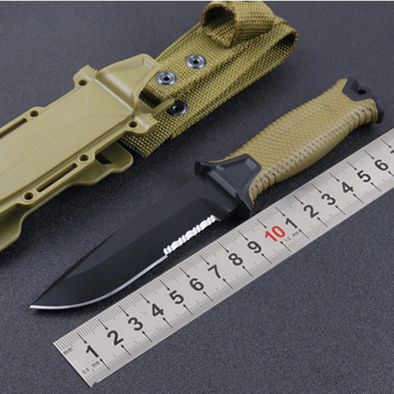 Comprar Cuchillos fijos tácticos Pro 60HRC hoja de acero cuchillo de caza Camping utilidad EDC herramientas medio modelo de serración Color marrón SDIYABEIZ Online Baratos