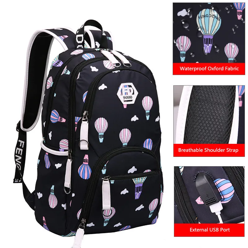 . Comprar FengDong niños impermeable escuela mochila para niñas bolsas de escuela globo lindo impresión portátil mochila mochilas mochila Online Baratos.