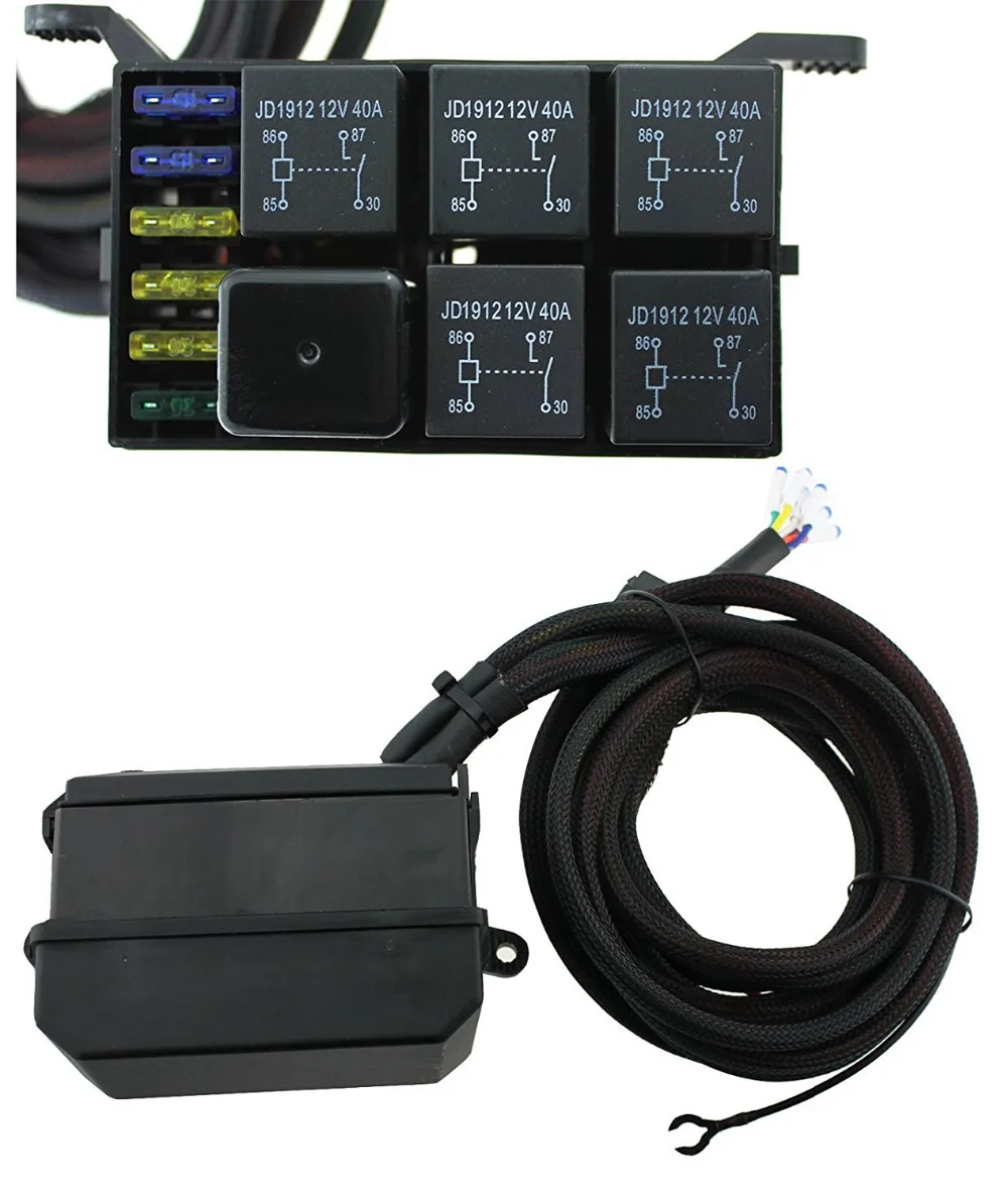 Comprar 6 pandillas panel electrónico sistema de relé control de circuito caja de fusibles impermeable caja de relés Arnés de cableado asambleas DC12V para CA Online Baratos