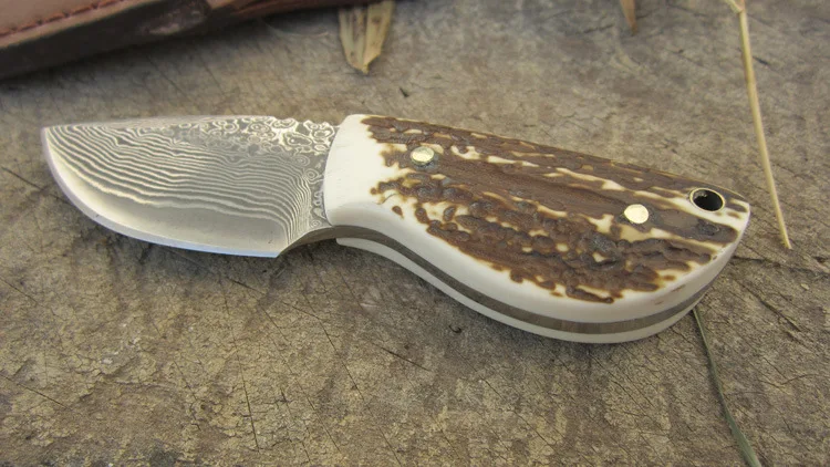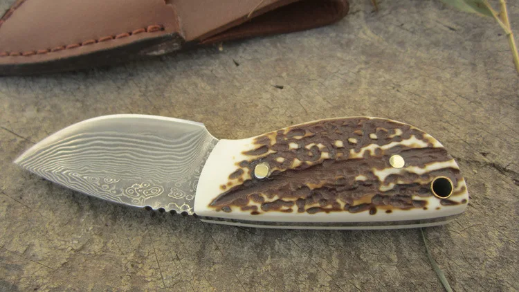 Comprar Cuchilla de acero damasco para acampar al aire libre cuchillo de supervivencia portátil cuchillos de caza con cuchillos de cuero cuchillo EDC fijo Online Baratos.