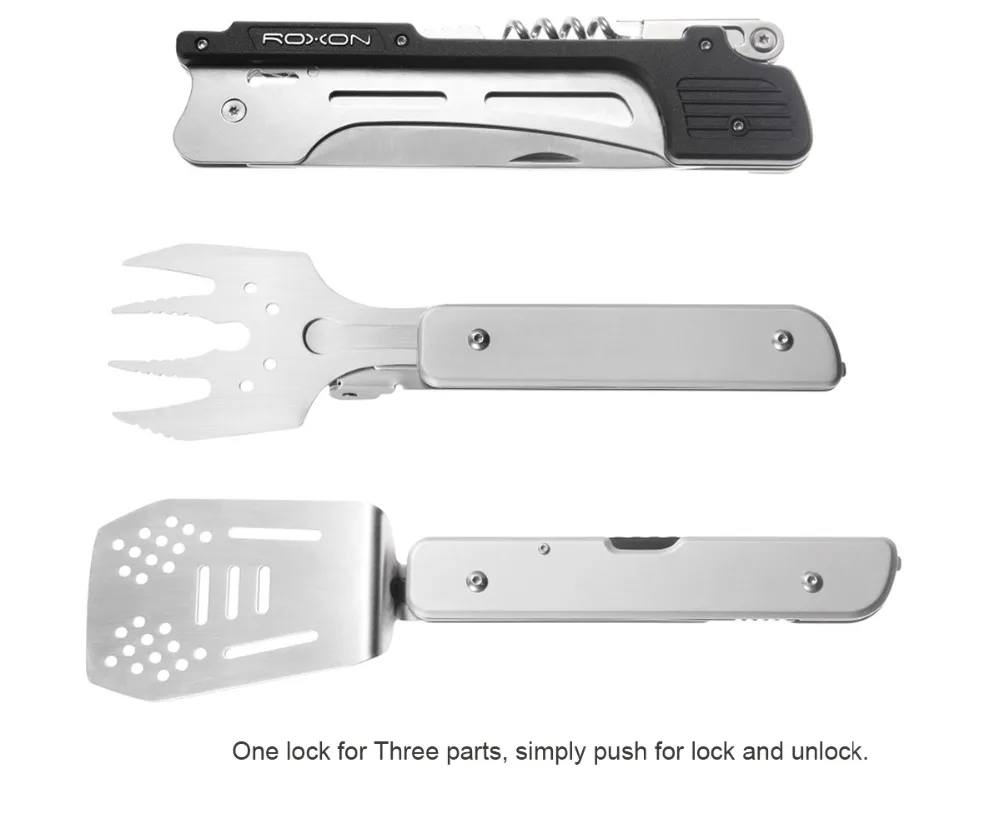 Comprar 6 en 1 ROXON S601 barbacoa Multi herramienta desmontable y plegable de la parrilla de la herramienta con espátula tenedor barbacoa pinzas abrelatas de botella Online Baratos