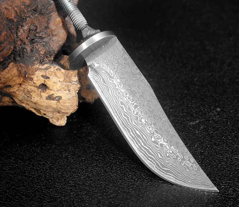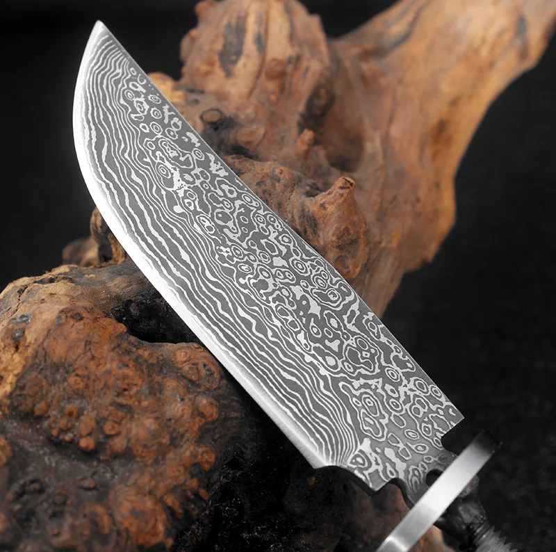 Comprar KKWOLF High carbon steel Damasco pattern caza knives DIY blade billet blank Sharp Fixed blade camping survival knife partes Online Baratos