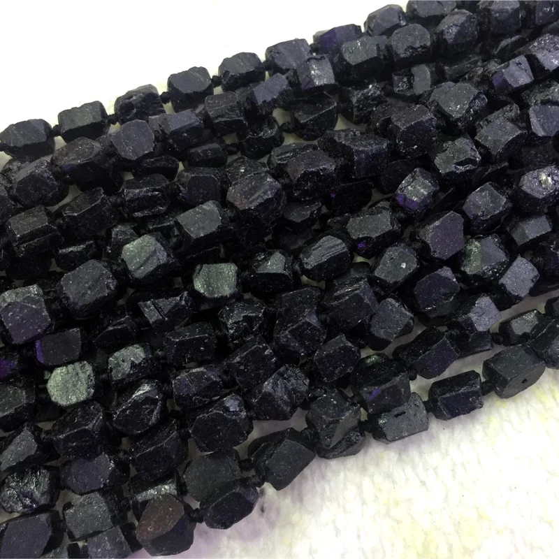 Comprar Natural genuino Mineral crudo de turmalina negro mano pepita de forma libre suelto mate áspero perlas facetadas 6 8mm 15 \"04318 T Online Baratos