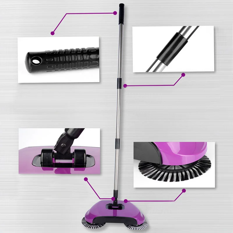 Comprar Acero inoxidable mano empuje barredoras barredora Push tipo mano empuje escoba mágica barredoras recogedor herramientas de limpieza del hogar Online Baratos.