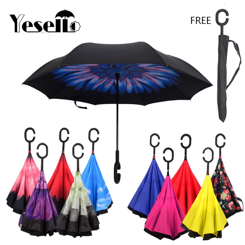Comprar Yesello paraguas inverso a prueba de viento + paraguas invertidos soporte bolsa de coche para hombres de pesca Online Baratos . Comp...
