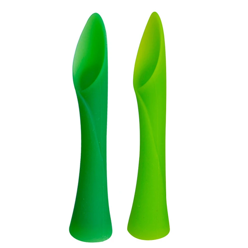 Comprar 2 piezas silicona bebé alimentación cuchara mordedores bambú hojas forma seguridad dentición juguetes infantiles niños pequeños platos Scoop utensilios Online Baratos.