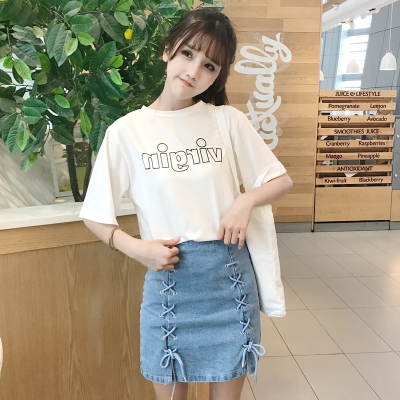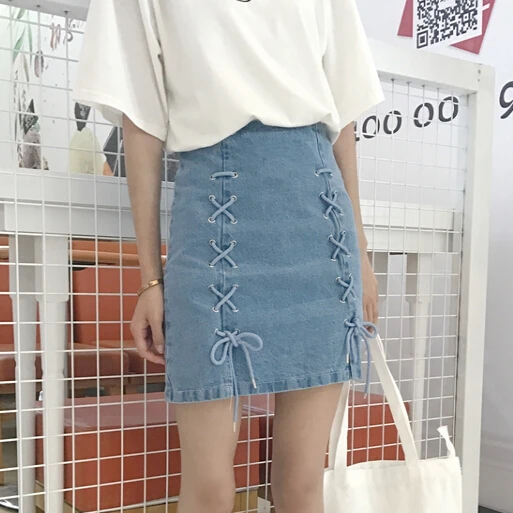 Comprar 2018 estilo chic mujeres verano de alta cintura a line Mini Denim faldas casual mujeres más tamaño abierto tenedor correas denim faldas Online Baratos.