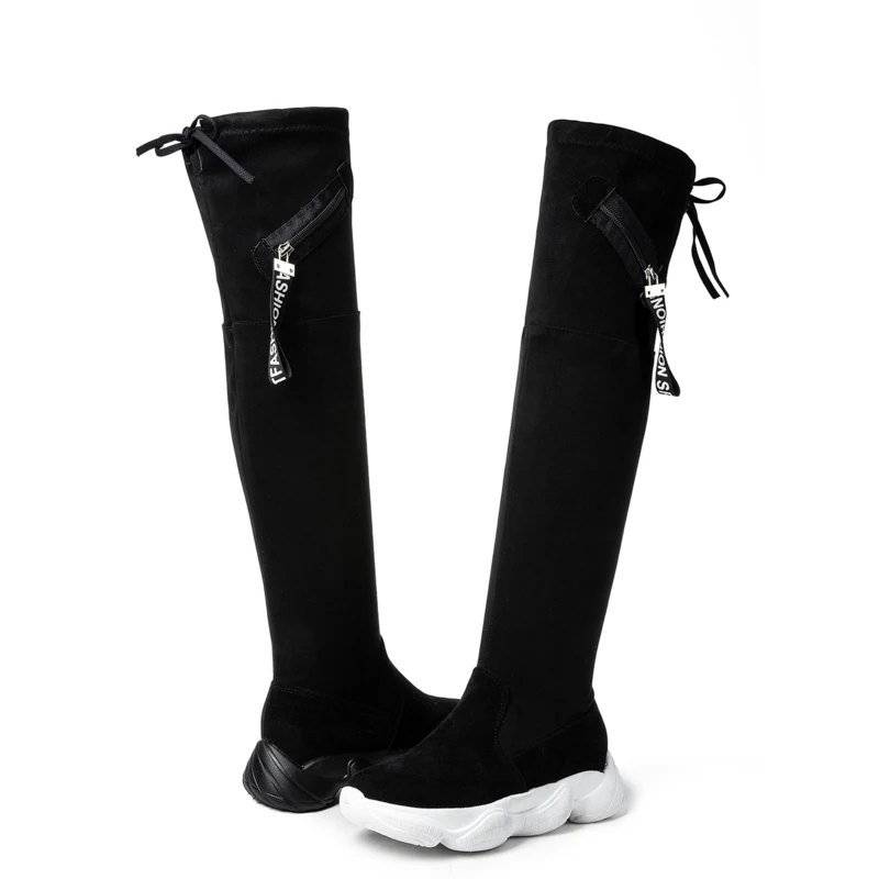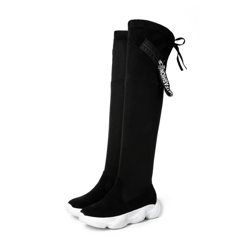 Comprar 2018 nuevos zapatos de mujer botas negras sobre la rodilla botas Sexy mujer Otoño Invierno señora malla elástica muslo botas altas tamaño 35 39 Online Baratos.