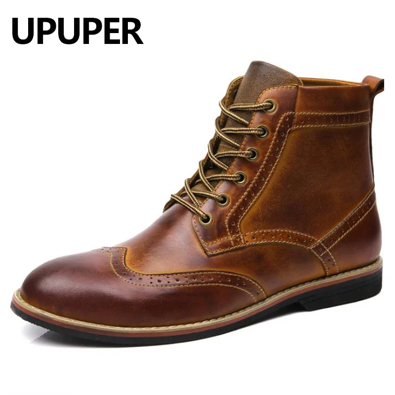Comprar 2018 otoño nuevos hombres botas talla grande 38 47 Vintage Brogue College estilo hombres zapatos Casual moda encaje up botas calientes para hombre marrón Online Baratos