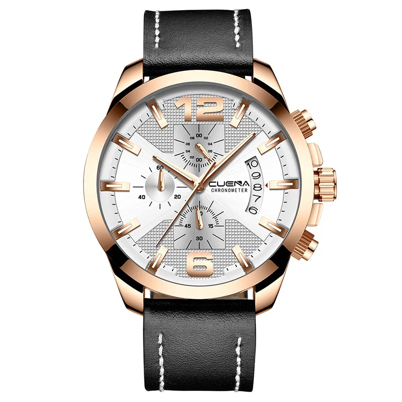 . Comprar CUENA Quartz relojes hombre marca de lujo cronómetro manos luminosas correa de cuero genuino 30 m reloj impermeable hombre reloj de moda 2018 Online Baratos.