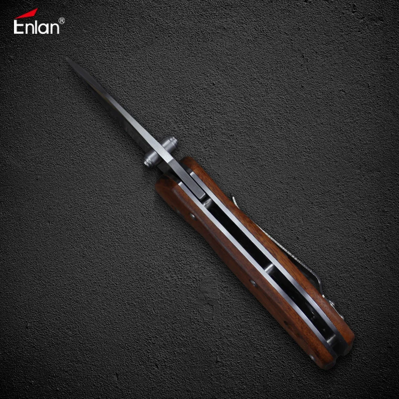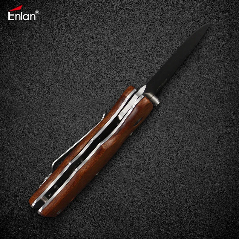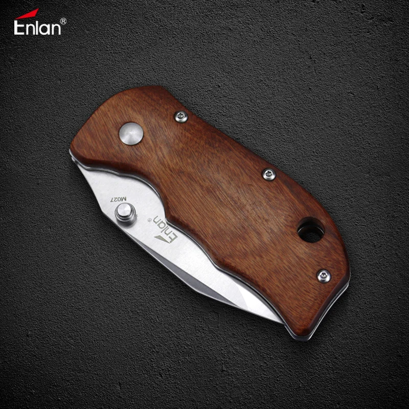 Comprar Enlan envío M027 pequeño cuchillo plegable de bolsillo 8Cr13Mov cuchilla mango de madera al aire libre Camping caza llavero de multi herramienta portátil EDC cuchillos Online Baratos.