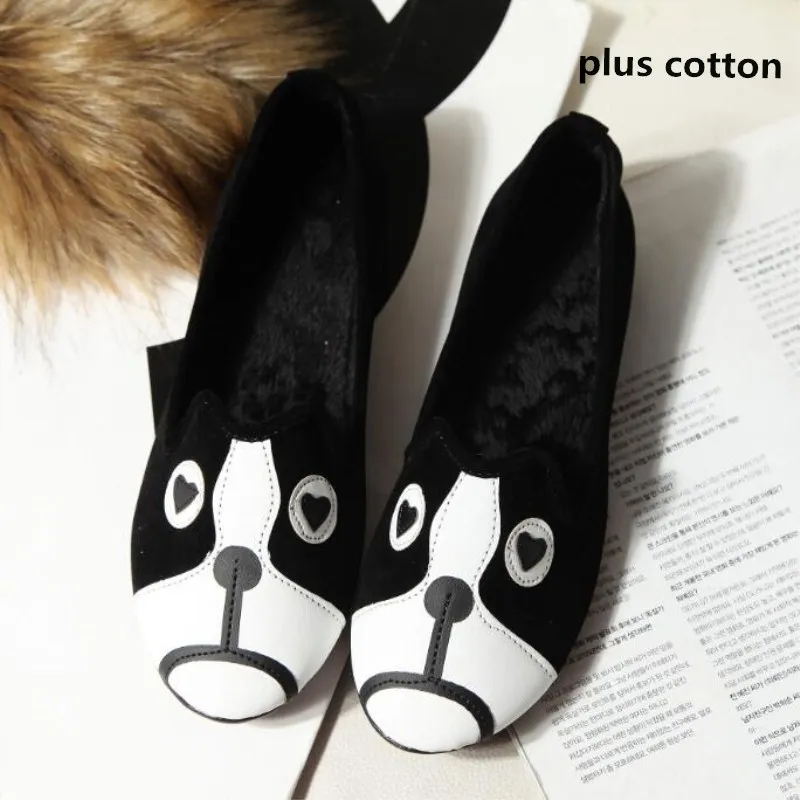 Comprar Envío libre 2016 zapatos de las mujeres de personalidad de los perro gato terciopelo confortables apartamentos completamente los zapatos Online Baratos