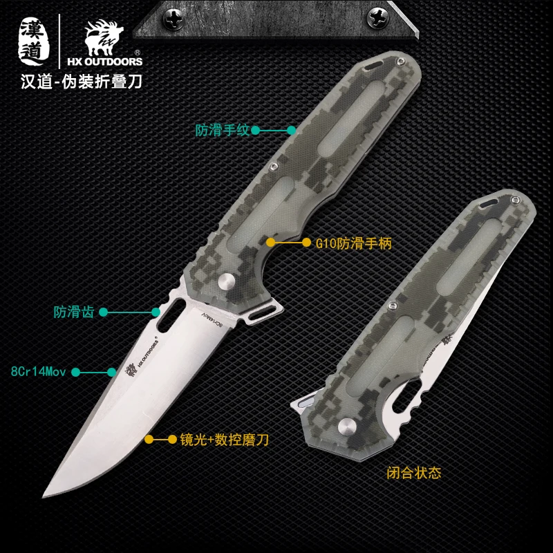 Comprar HX Aire Libre plegable más nuevo de acero doblado hoja, cuchillo táctico al aire libre, supervivencia Cuchillos Herramientas, EDC camping supervivencia del ejército Online Baratos