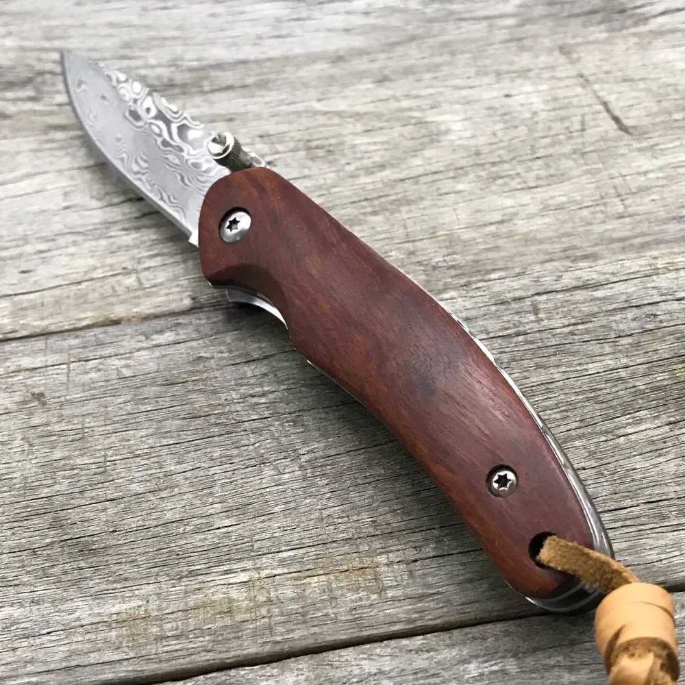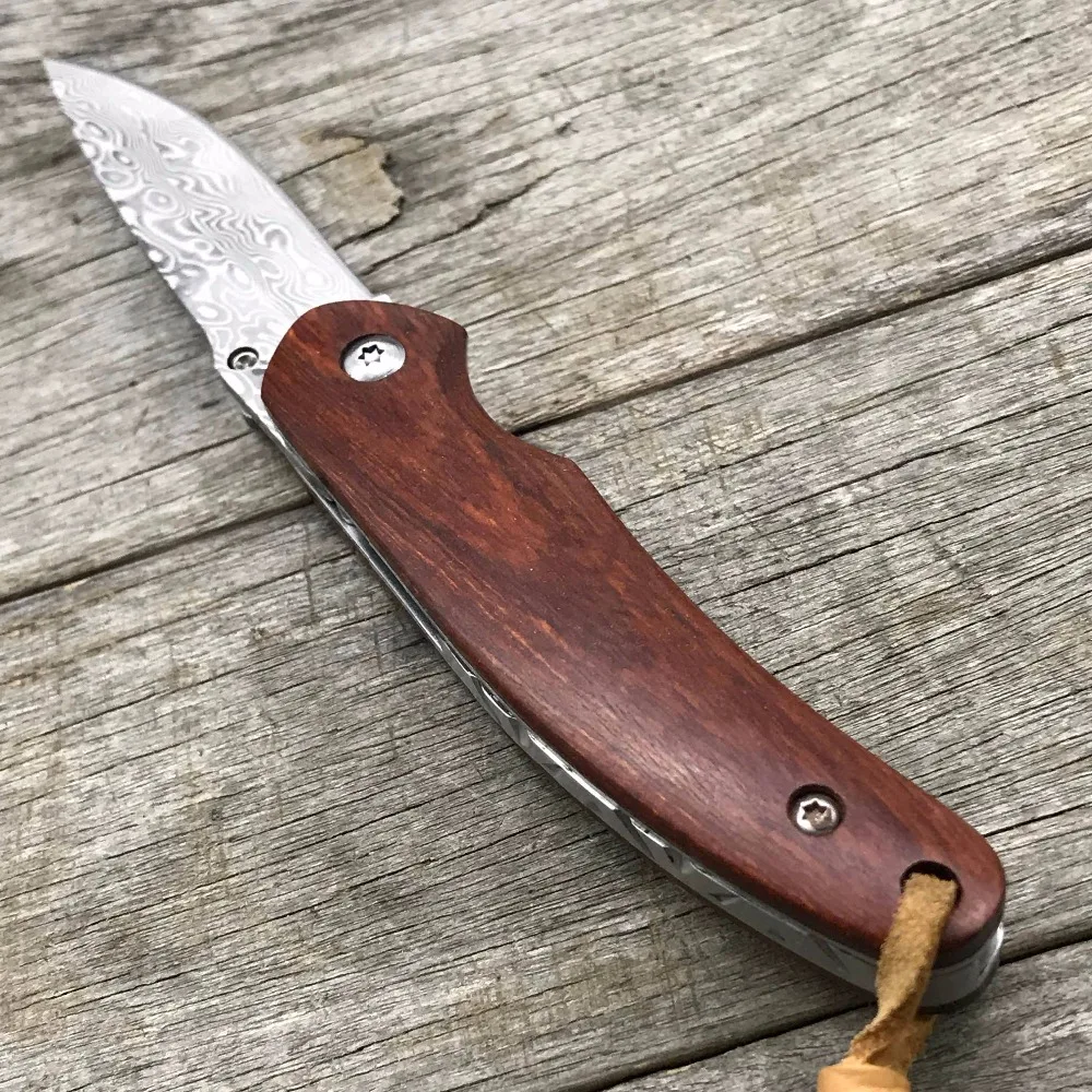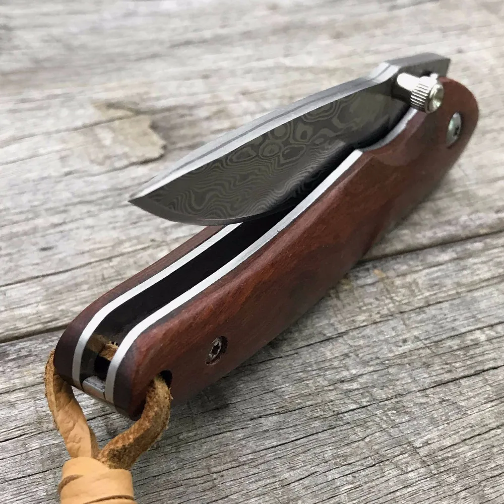 Comprar LDT cuchillo plegable Original Damasco hoja palisandro mango de acero al aire libre bolsillo Camping cuchillos caza supervivencia cuchillo EDC herramientas Online Baratos.