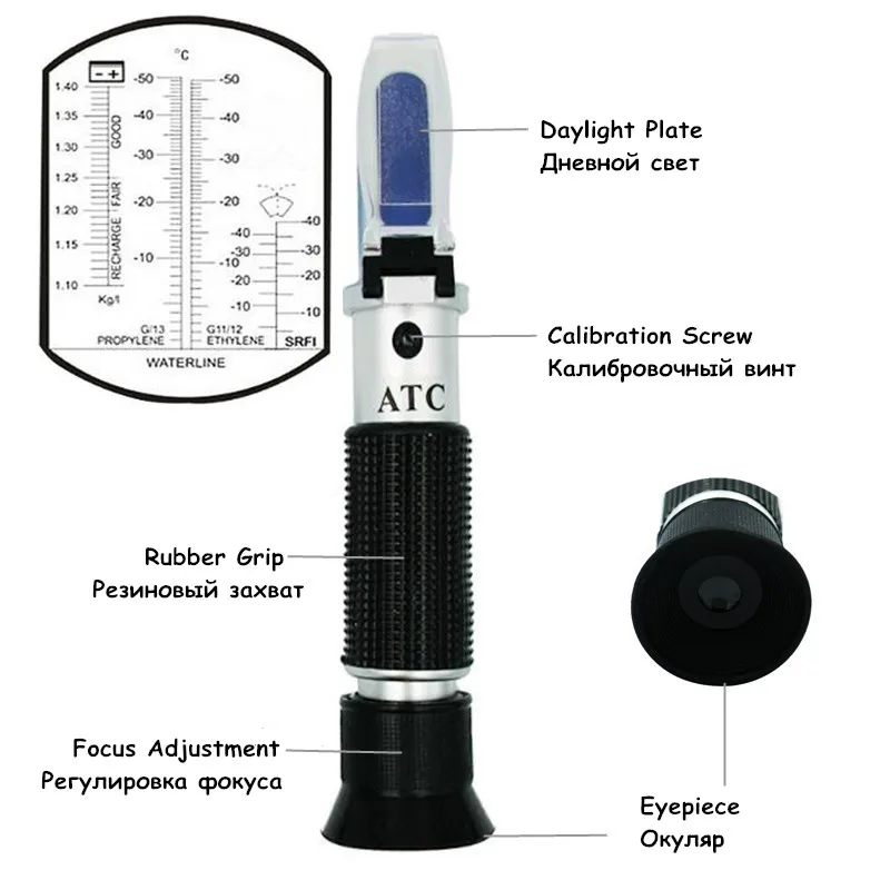 Comprar Mano del motor líquido glicol punto Refractómetro con ATC de herramienta de batería de coche anticongelante congelación 20% Online Baratos