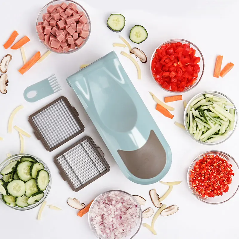 Comprar Nuevo cortador de mandolina cuchillo de comida Cortador Manual de verduras rallador de ajo con 3 cuchillas de acero inoxidable accesorios de cocina Online Baratos.