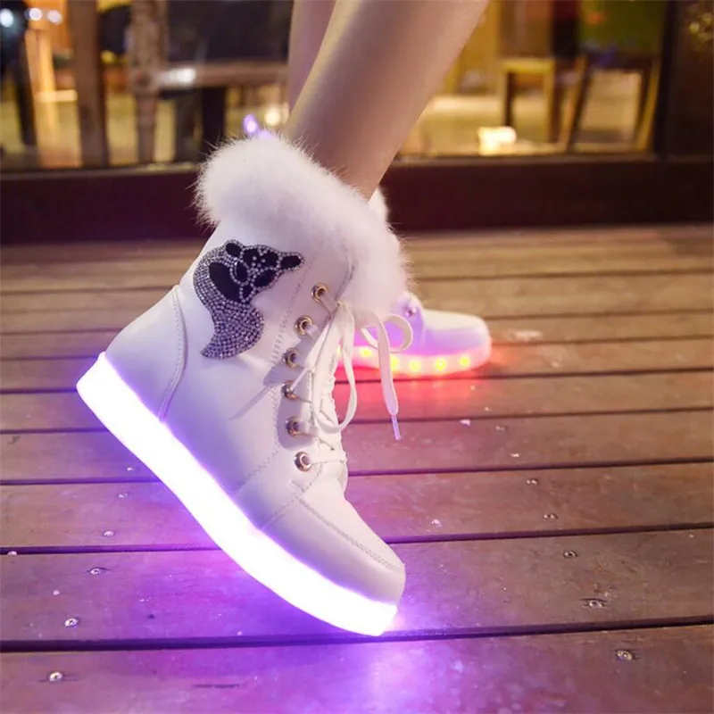 . Comprar Nuevo estilo caliente venta zapatos luminosos de cuero Gennuine fluorescente nieve LED luces Usb recargable zapatos Online Baratos.