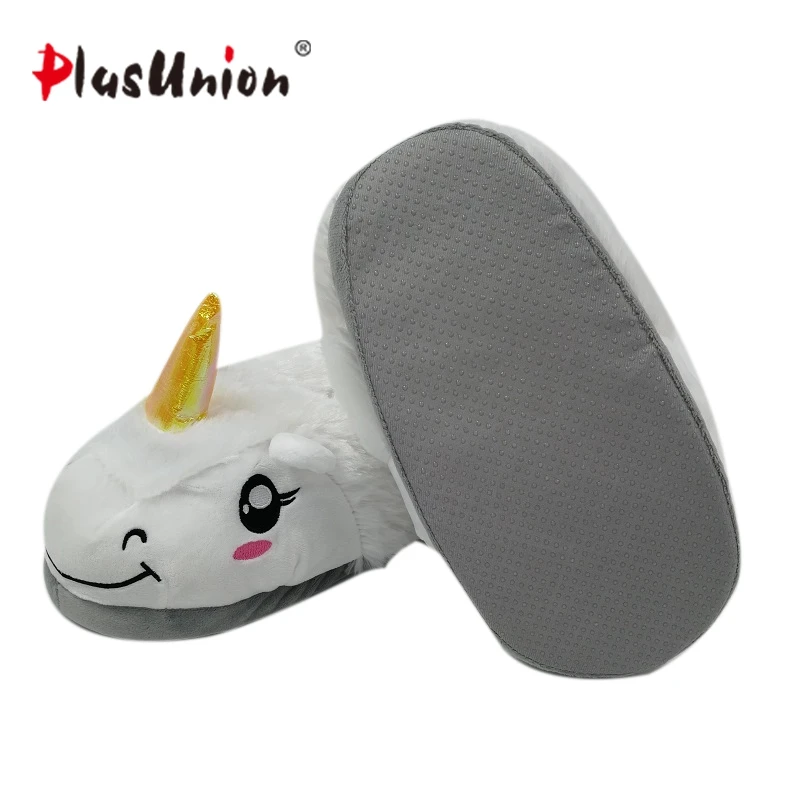 Comprar plano con interior algodón sólido unicornio zapatillas peludo mullido casa mulas pelaje plataforma dar la vuelta flops felpa mujer zapatos pantuflas de invierno animales chanclas mujeres Online Baratos
