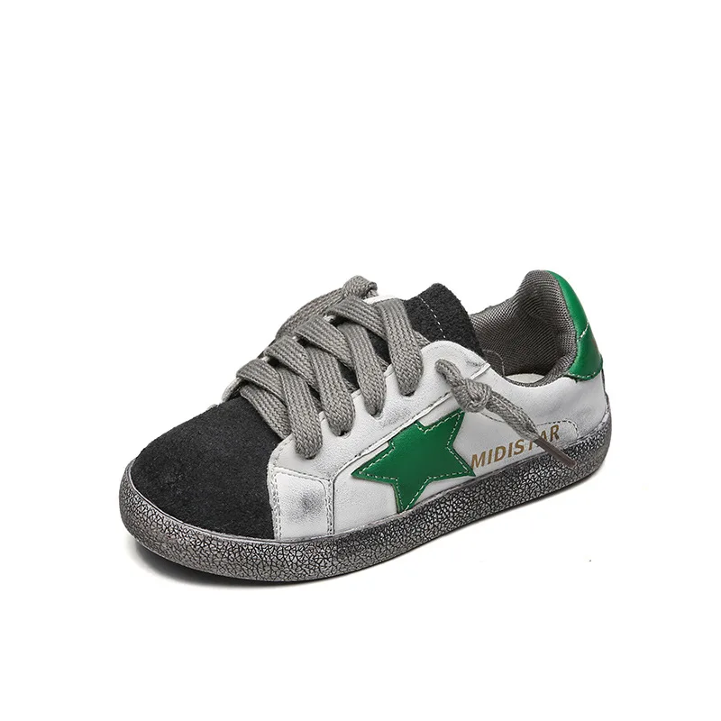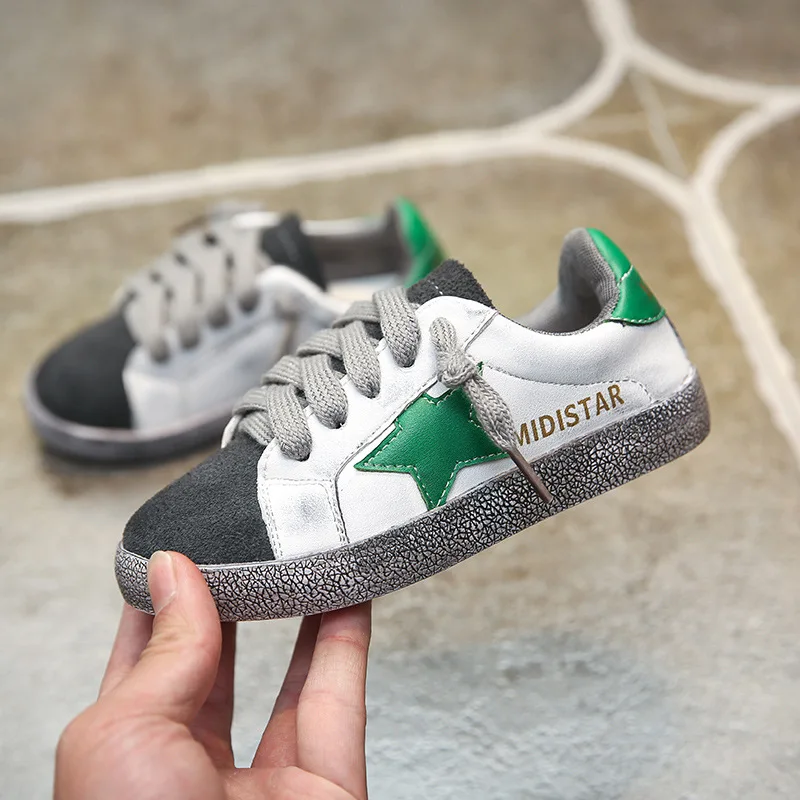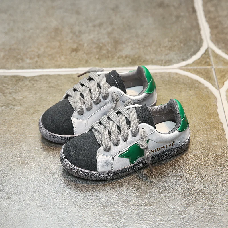 Comprar Vendimia estrella de cuero parche niños niñas zapatillas contraste Color niños zapatos casuales niños niñas zapatos del patín Online Baratos