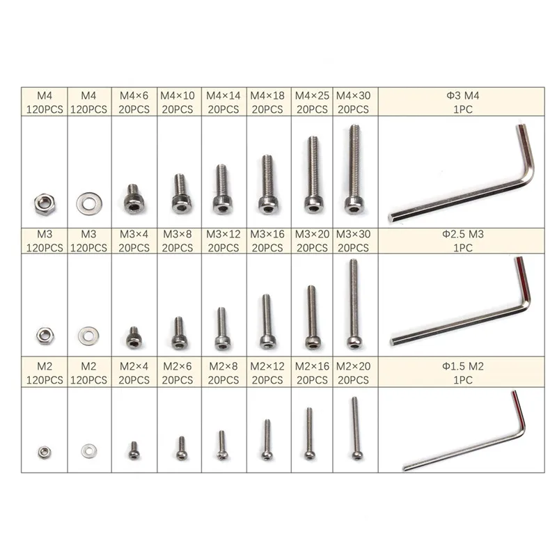 . Comprar 1080 piezas M2 M3 M4 de fijación de acero inoxidable Hardware hexágono enchufe casquillo de cabeza tornillos arandela plana con 3 piezas loco llave Kit Online Baratos.