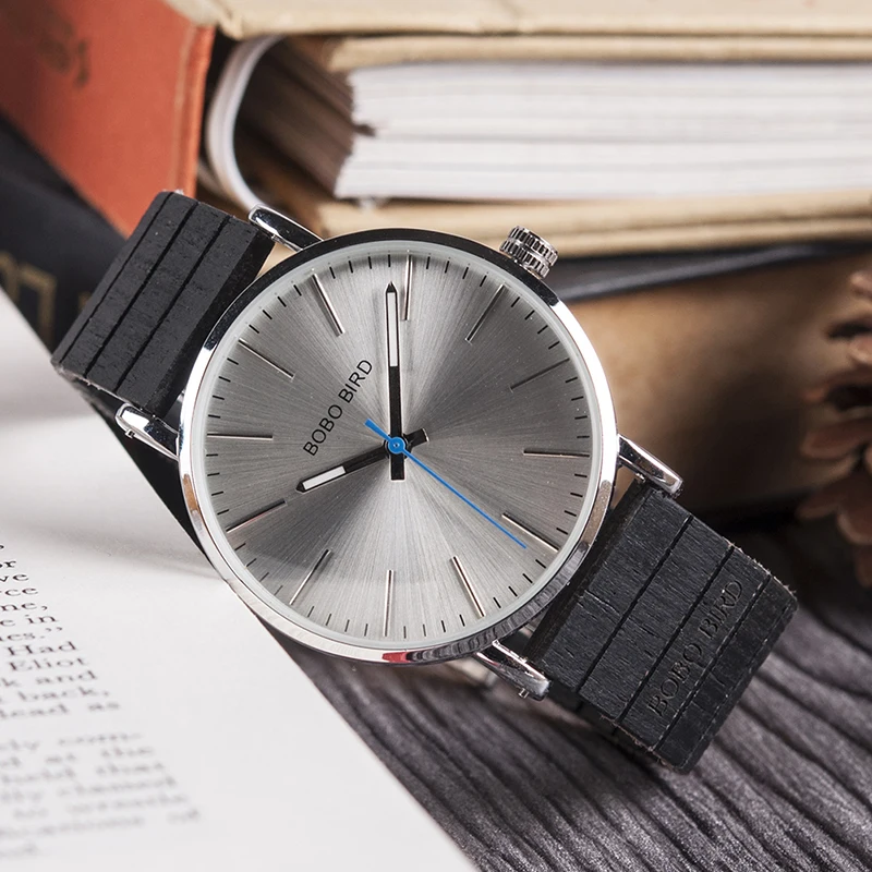 Comprar BOBO BIRD hombres Ultra delgada caso de plata clásico reloj de cuarzo Dial con especial banda de madera en caja de regalo Online Baratos.