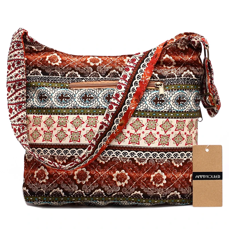 Comprar Bolso de hombro de mujer de moda de estilo bohemio Hippie Hobo bolso de doble cremallera bandolera grande Online Baratos