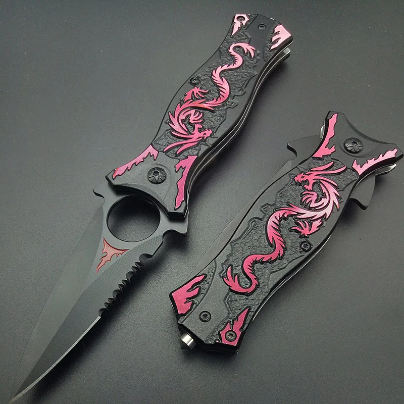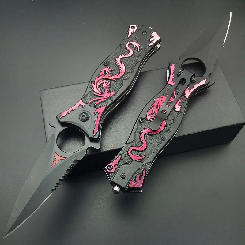 . Comprar Caza Camping supervivencia cuchillo de bolsillo de acero inoxidable Multi herramientas senderismo rojo Wiredraw Dragon grano cuchillos doblar cuchillo al aire libre Kit Online Baratos.