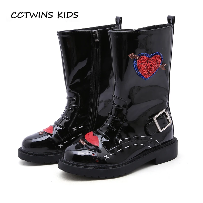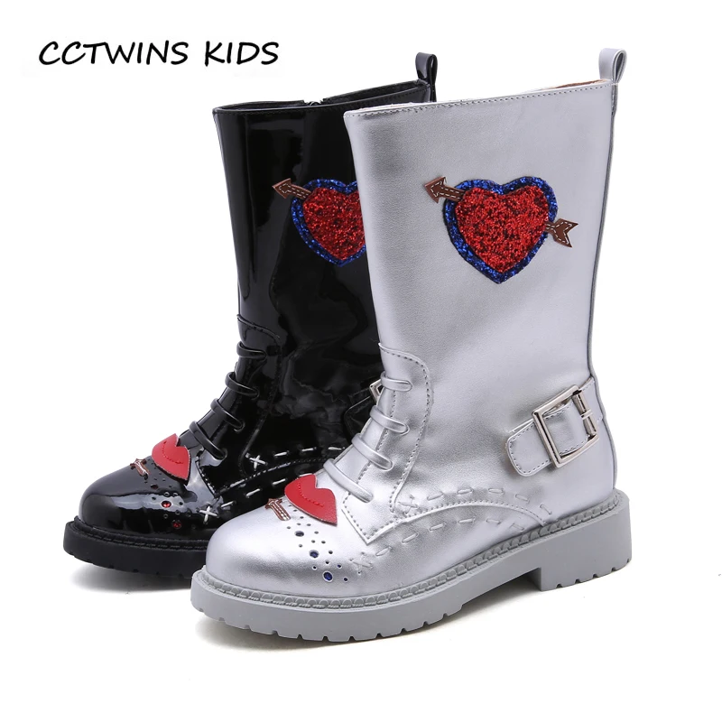 . Comprar CCTWINS KIDS 2018 otoño niña moda bota niños moda Glitter arranque Martin niño plata negro Pu zapatos de cuero h032 Online Baratos.