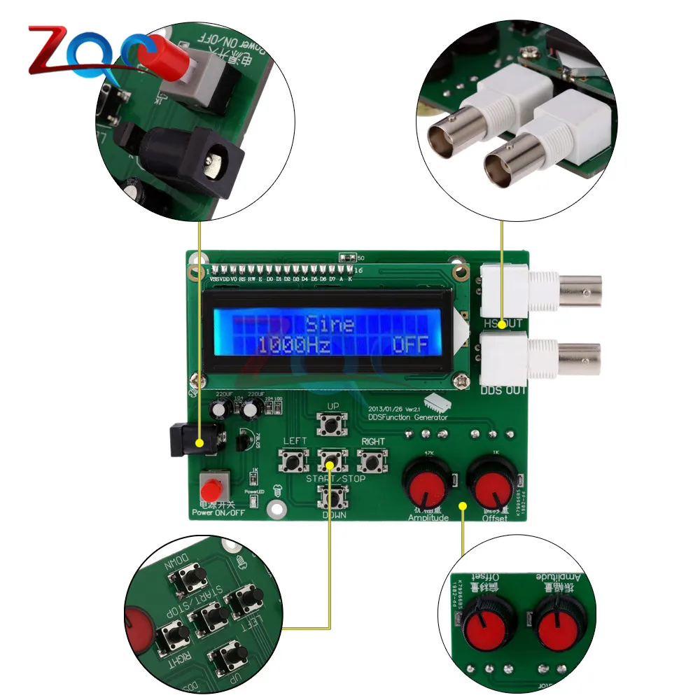 Comprar Función DDS generador de señal módulo Sawtooth triángulo onda senoidal Plaza Sawtooth onda Kit 1Hz 65534Hz DC 7 v 9 V pantalla LCD Online Baratos