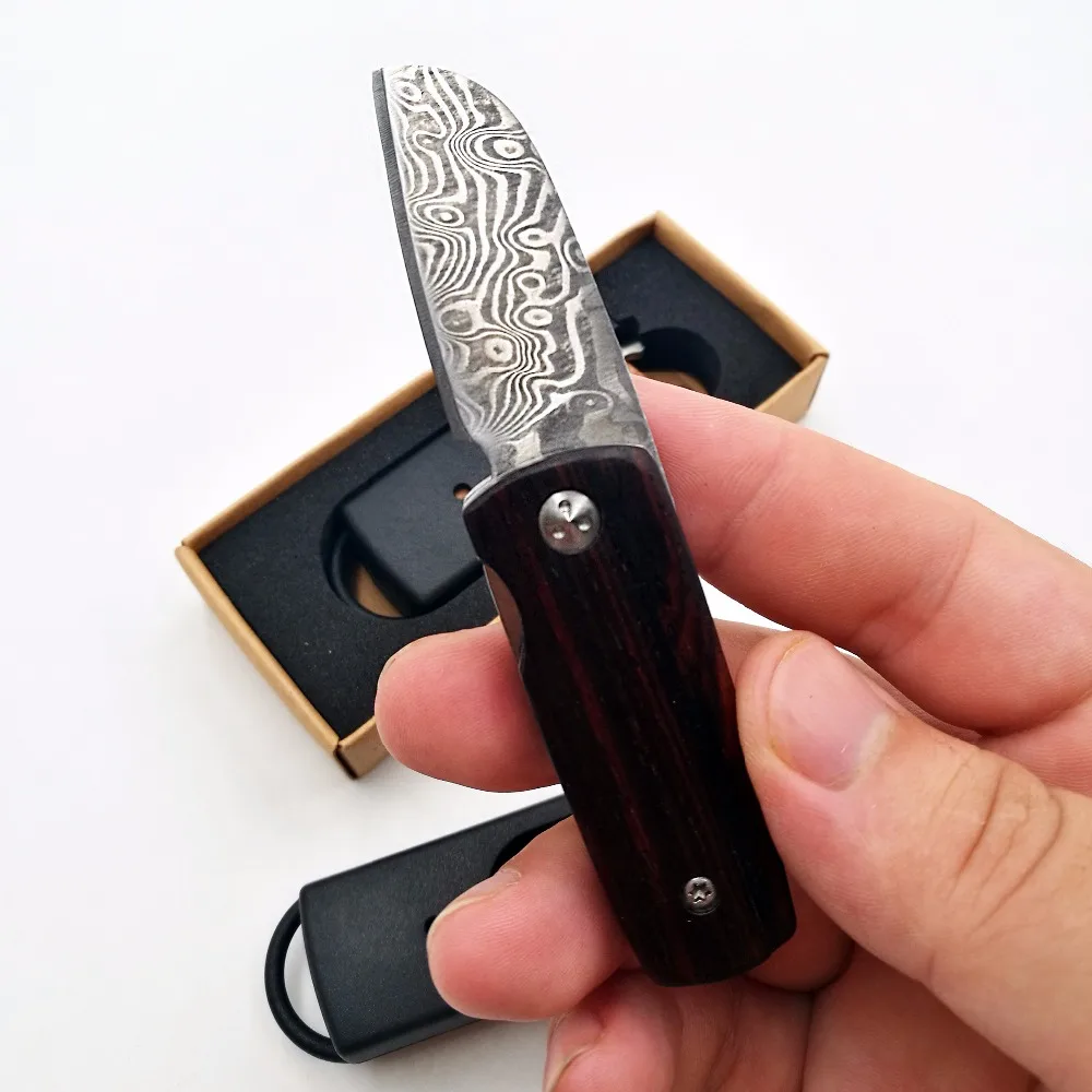. Comprar GRW hecho a mano Mini plegable cuchillo de Damasco D2 cuchilla mango de madera táctica de supervivencia de bolsillo de rescate cuchillos Camping caza herramientas EDC Online Baratos.