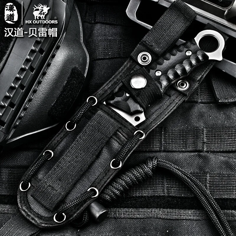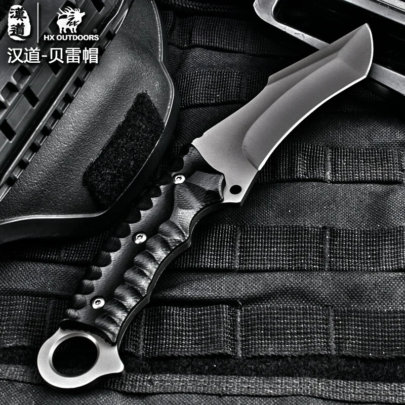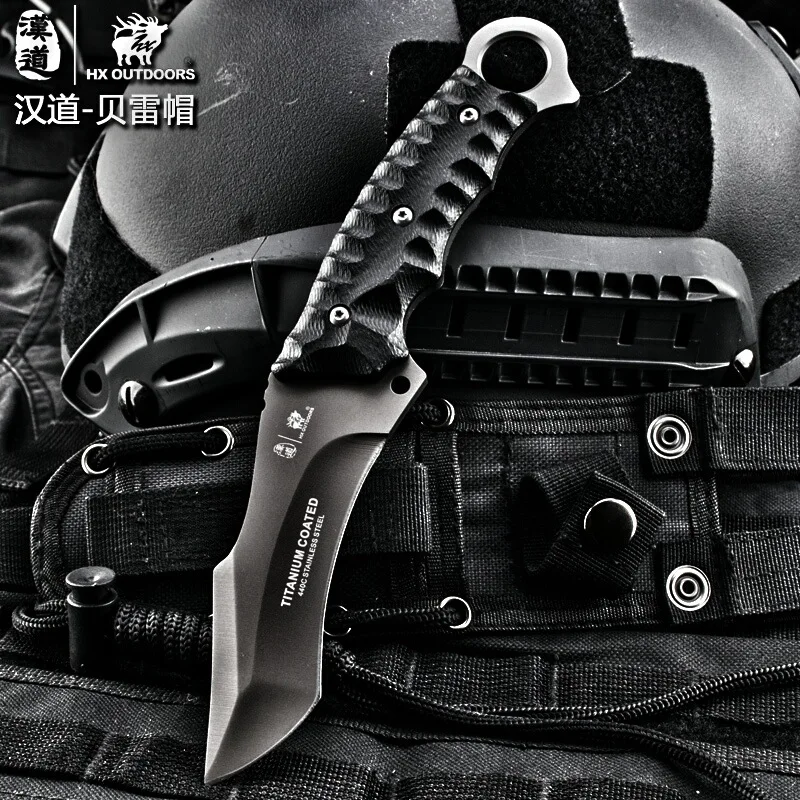 Comprar HX al aire libre alta calidad cuchillo táctico herramienta multi superficie plateada Titanium negro fijo herramienta cuchillo que acampa supervivencia caza cuchillo Online Baratos