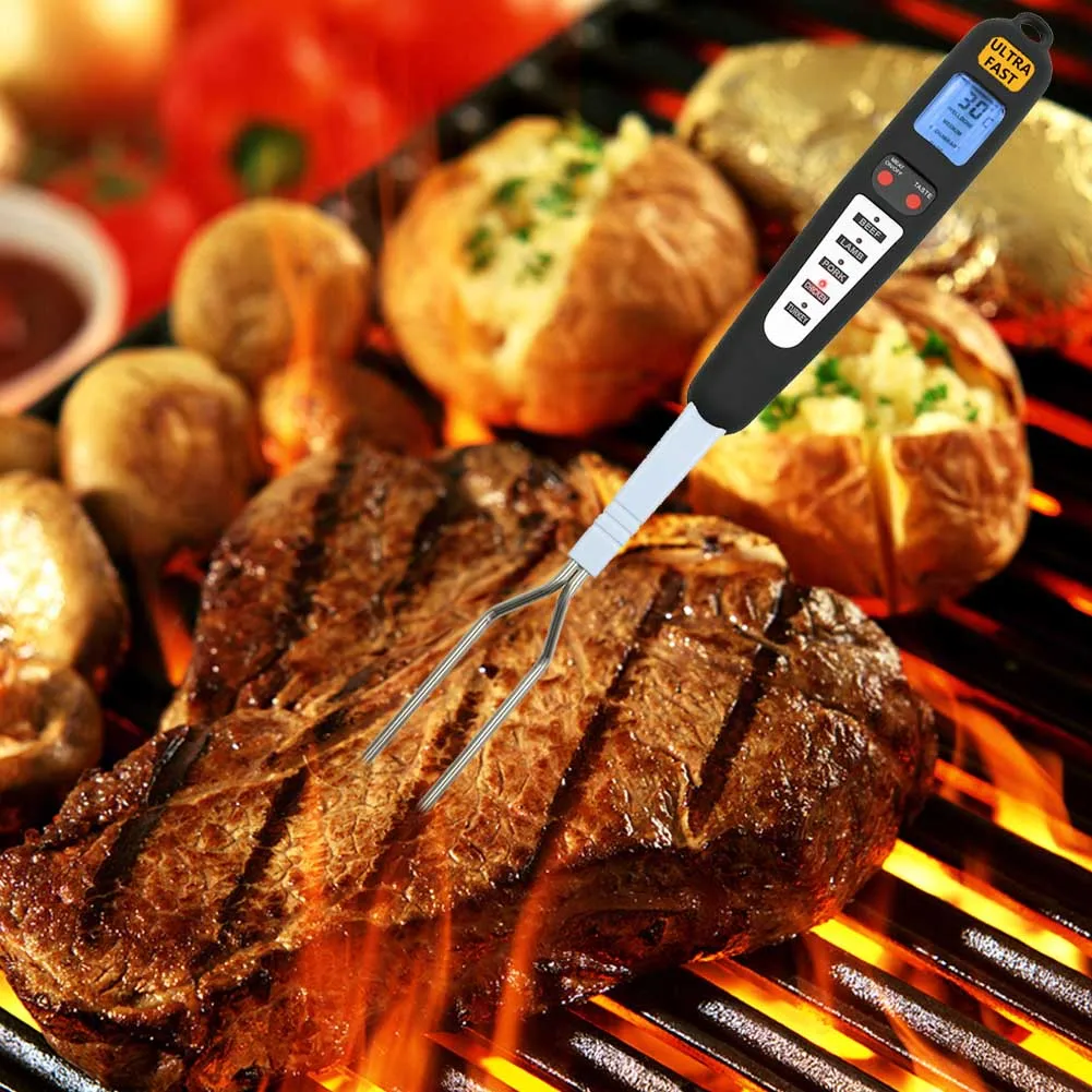Comprar Recién carne tenedor termómetro Digital con pantalla LED alarma de largo tenedor herramienta para asar Q Cocina Online Baratos.