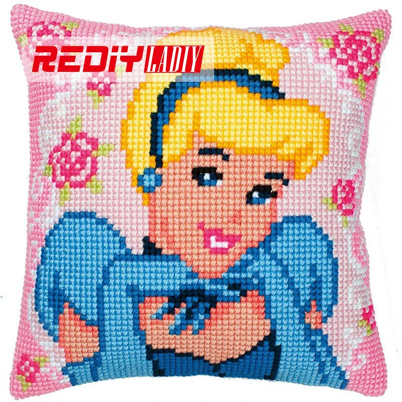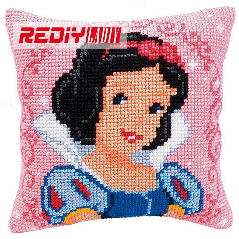 Comprar REDIY LADIY Cross Stitch Dibujos Animados Funda de Cojín Funda de Almohada Princesa Gruesos Kits de Punto de Cruz Hilo para Bordar Cojines Online Baratos.