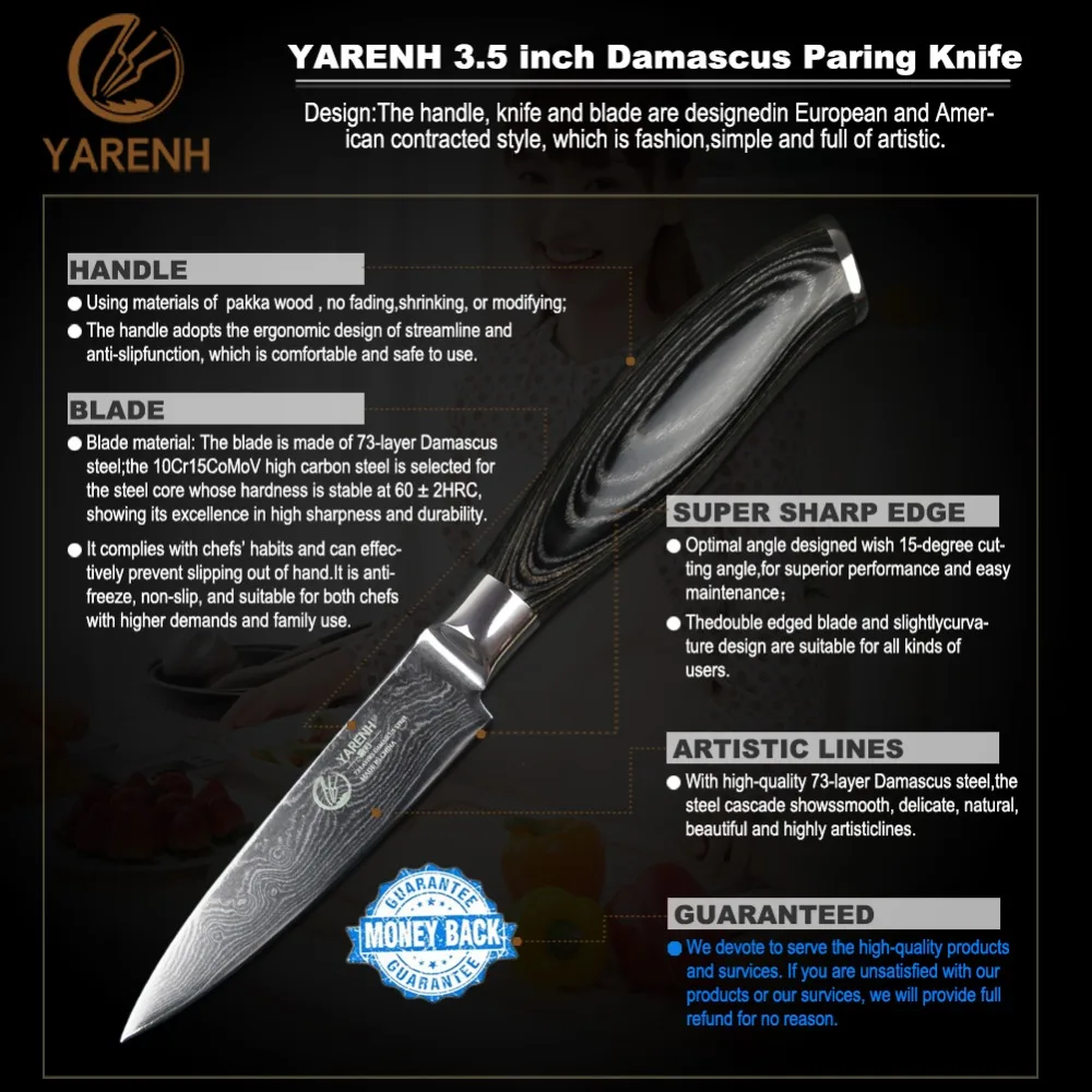 . Comprar YARENH 3,5 pulgadas cuchillo para cortar Japón vg10 Damasco cuchillos de cocina cuchillo de fruta pelado afilado con mango de madera pakka Online Baratos.
