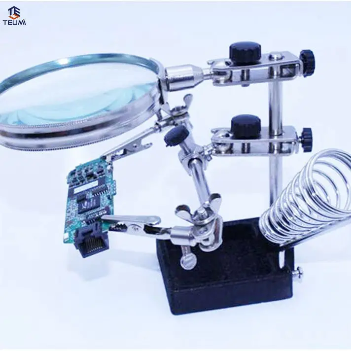 Comprar 2016 nuevas herramientas multifuncionales de soldadura de hierro soporte de soldadura de escritorio 4X lente lupa Third Helping Hands Solder Allegator Clips Online Baratos.