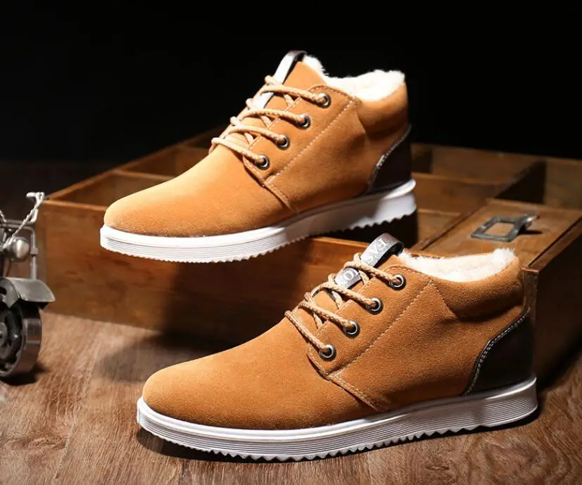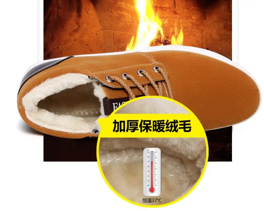 Comprar Botas de nieve hombres calentamiento tela de encaje hasta tobillo botas invierno mantener caliente antideslizante botas inferiores amantes zapatos Chaussure homme Online Baratos.