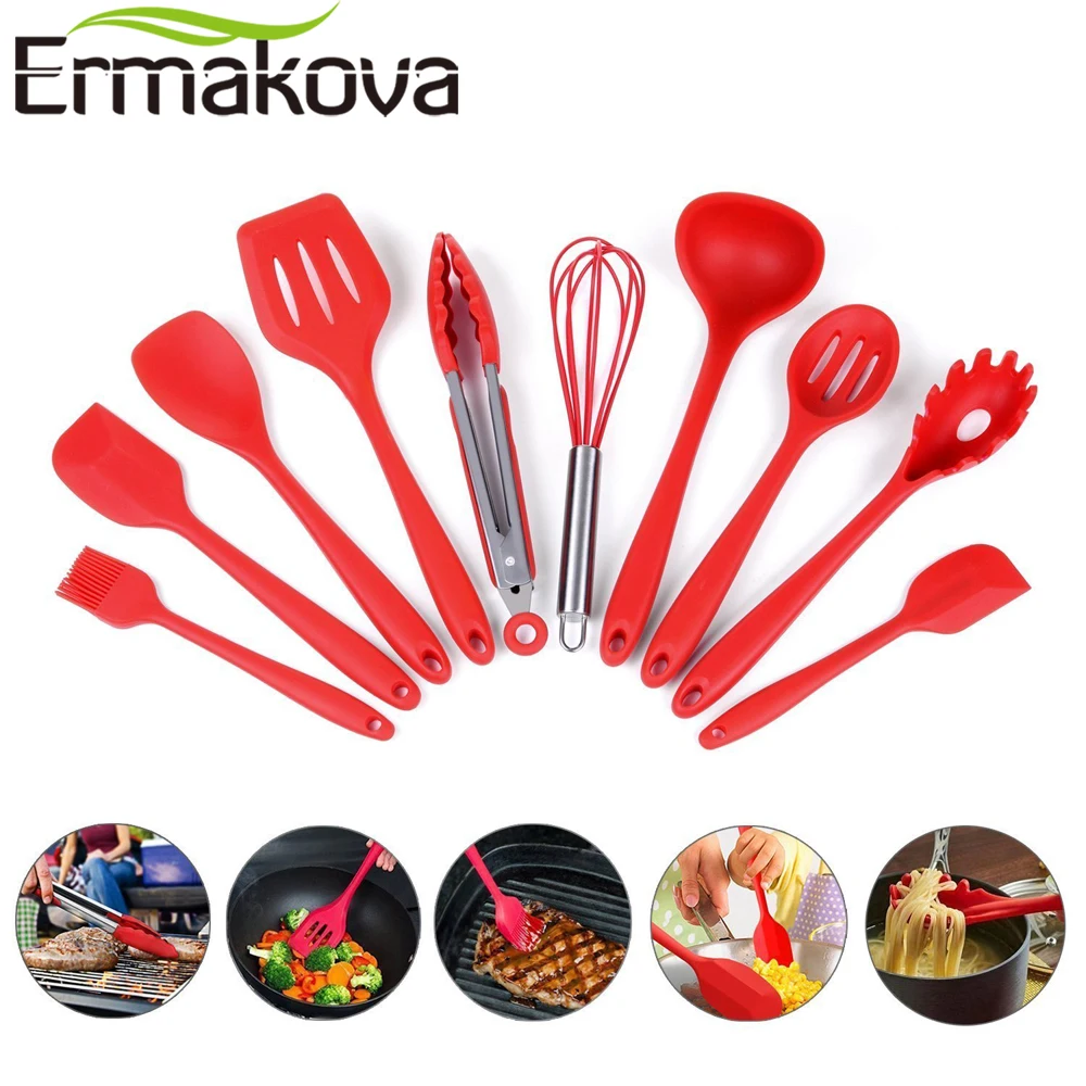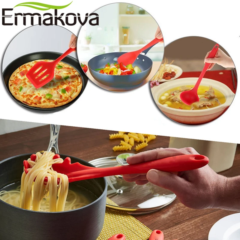 Comprar ERMAKOVA de silicona Pasta bifurcación Turner espátula cuchara de cocina de acero inoxidable cocina utensilio de cocina conjunto Online Baratos.