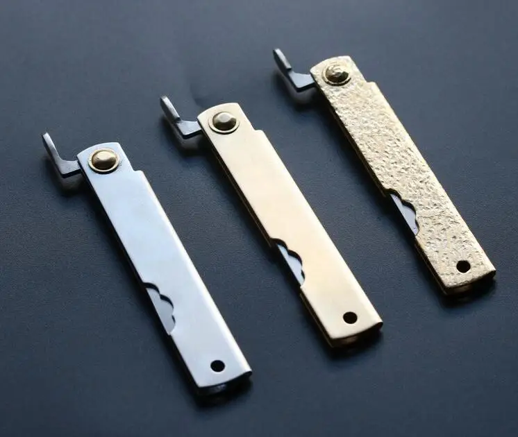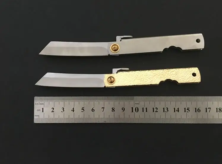Comprar Hecho a mano tradicional japonés estilo plegable cuchillo con shealth navaja plumas patrón caja de latón cuero aceite Online Baratos.