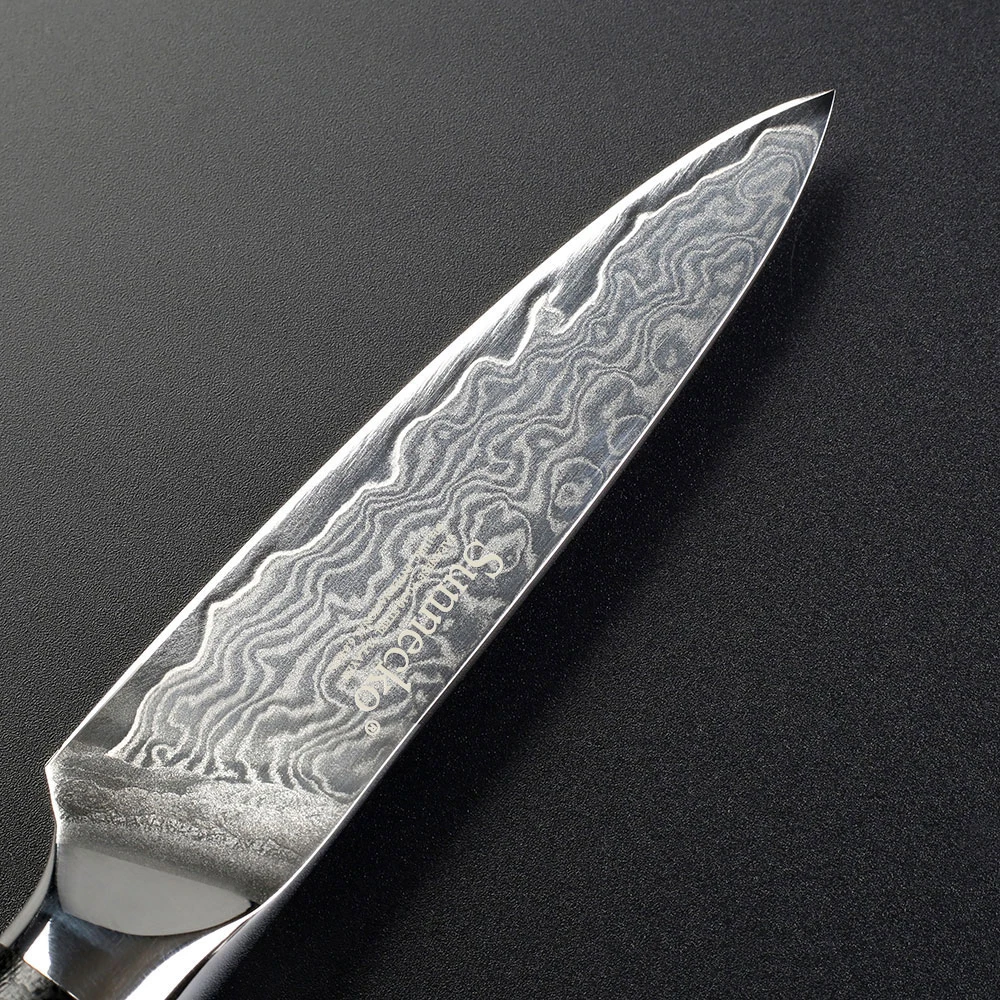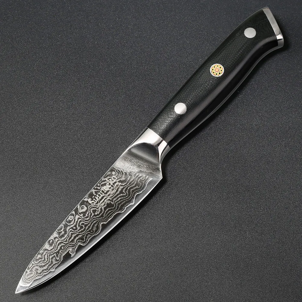 Comprar SUNNECKO 3,5 \"pulgadas cuchillo Damasco acero cuchillos de cocina japonesa VG10 hoja afilada fruta G10 mango Online Baratos.