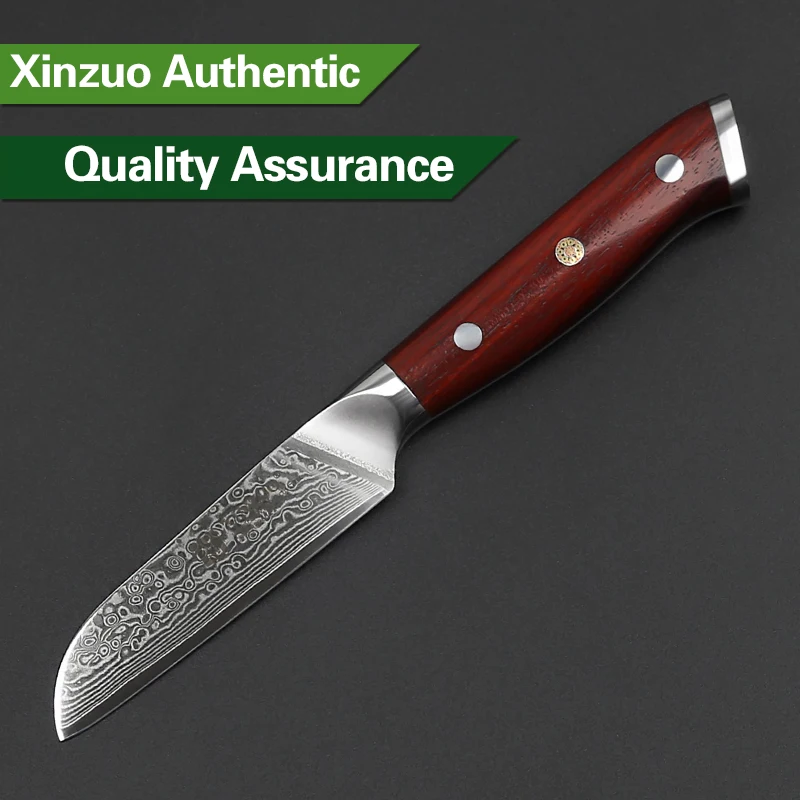 . Comprar XINZUO 3,5 cuchillo de pared japonés 73 capa Damasco acero de alta calidad cuchillo de cocina fruta cuchillo con mango de palo de rosa Online Baratos.