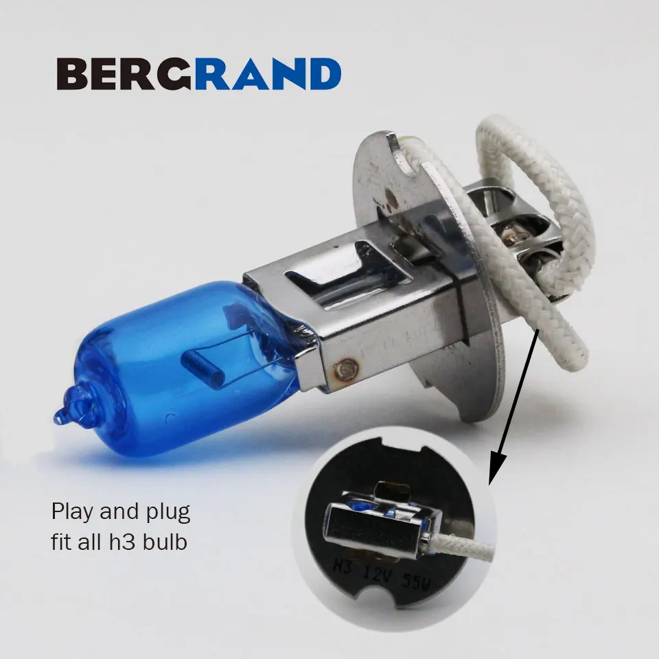 . Comprar 2 piezas bombilla H3 5000 K lámpara halógena 12 V 55 W 5000 K Xenon coche cabeza niebla lámpara azul oscuro cuarzo cristal PK22s bombillas para coches Online Baratos.