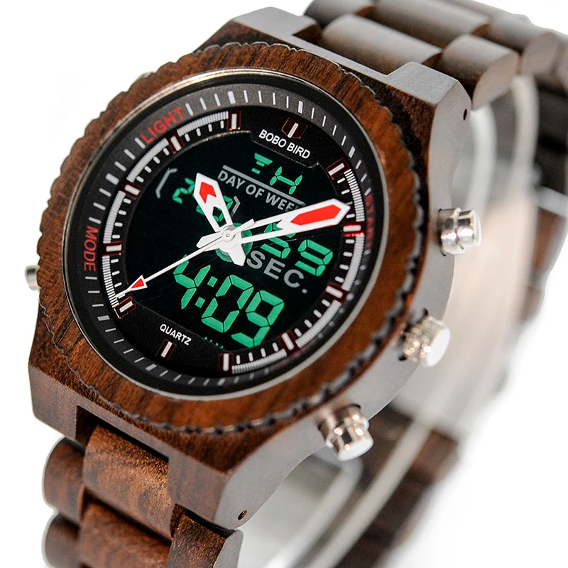 Comprar BOBO BIRD LED Digital de madera reloj hombres Dual Display relojes de cuarzo hombre relogio masculino en caja de regalo de Bambú w P02 Online Baratos.