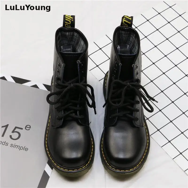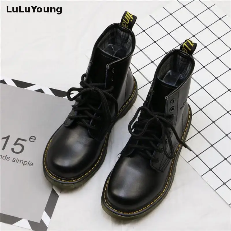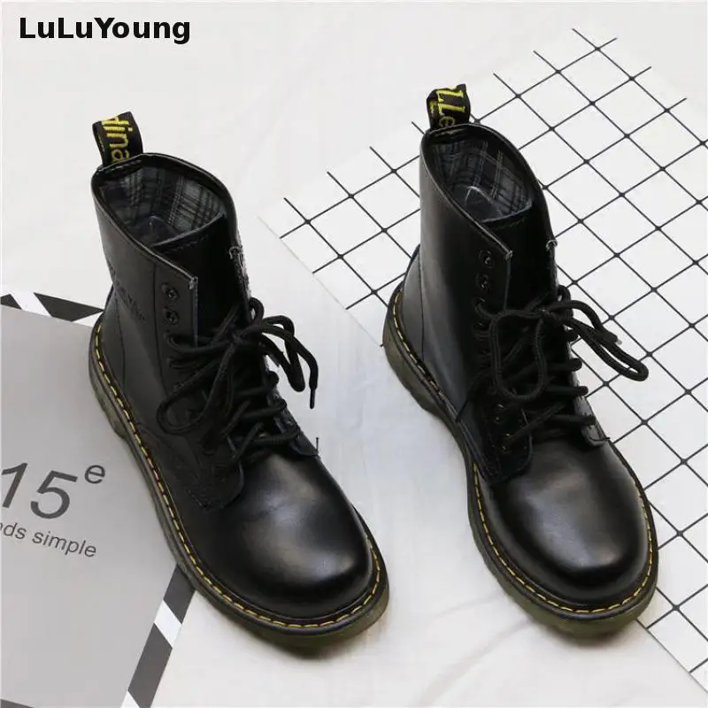 Comprar Botas Martin negras para mujer estilo Inglés Estudiante de fondo plano Casual botas Motorcle señora Online Baratos.