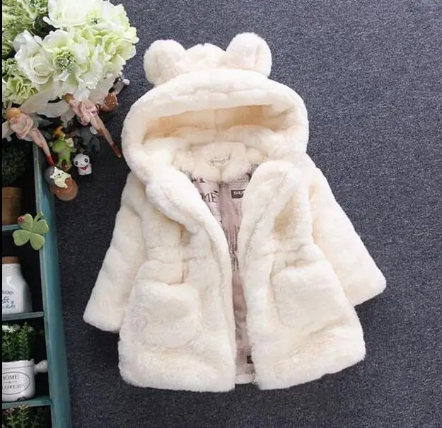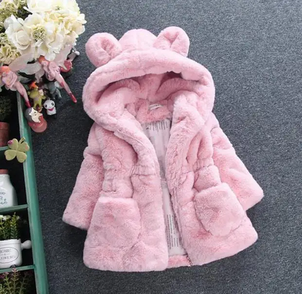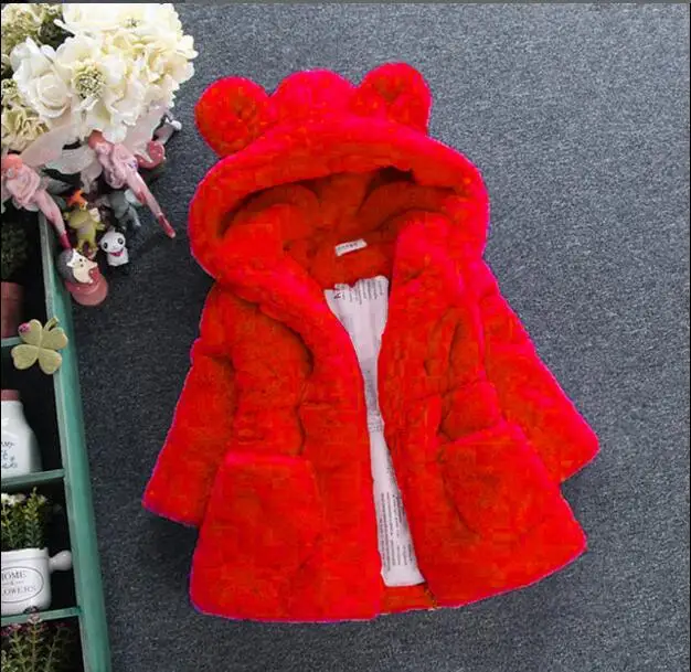 Comprar Chaleco del invierno del bebé de los niños Orejas de conejo de piel niñas abrigo de piel Artificial niños Faux Fur tela ropa Outwear nuevo Online Baratos