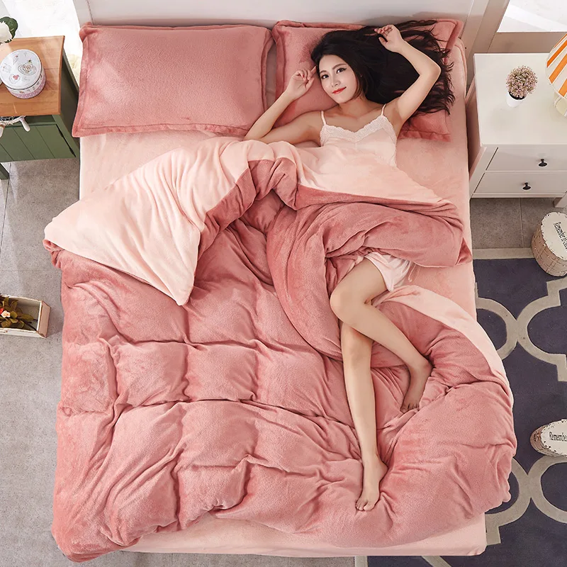 Comprar Conjunto de ropa de cama de lana de invierno 2018 funda de edredón reversible de franela de doble cara hoja plana 3 4 unids piezas ropa de cama Online Baratos.