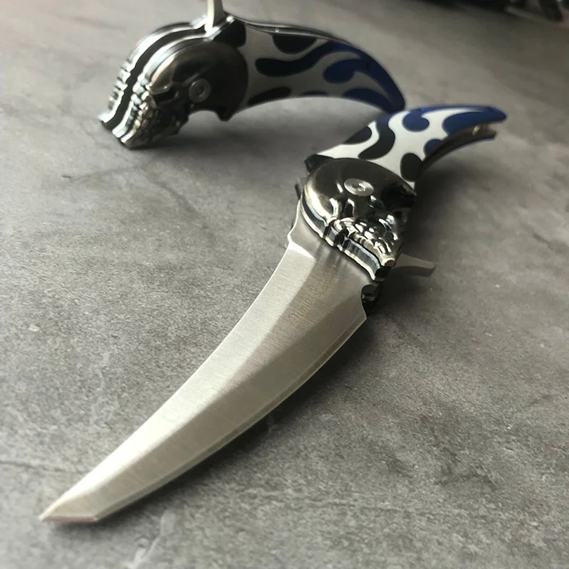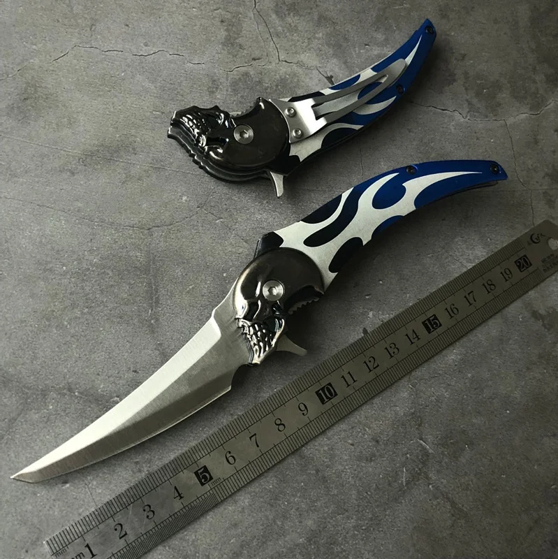 Comprar Cuchillo táctico de bolsillo plegable cuchilla de acero inoxidable cabeza de calavera fantasma Camping EDC herramientas de supervivencia al aire libre cuchillos de caza regalo Online Baratos.