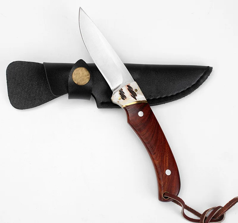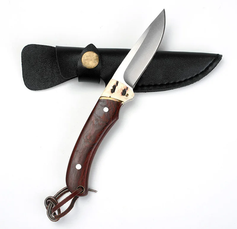. Comprar KKWOLF cuchillo de caza fijo táctico supervivencia cuchillos 440C hoja de madera huesos mango exterior north american Camping cuchillo EDC herramientas Online Baratos.